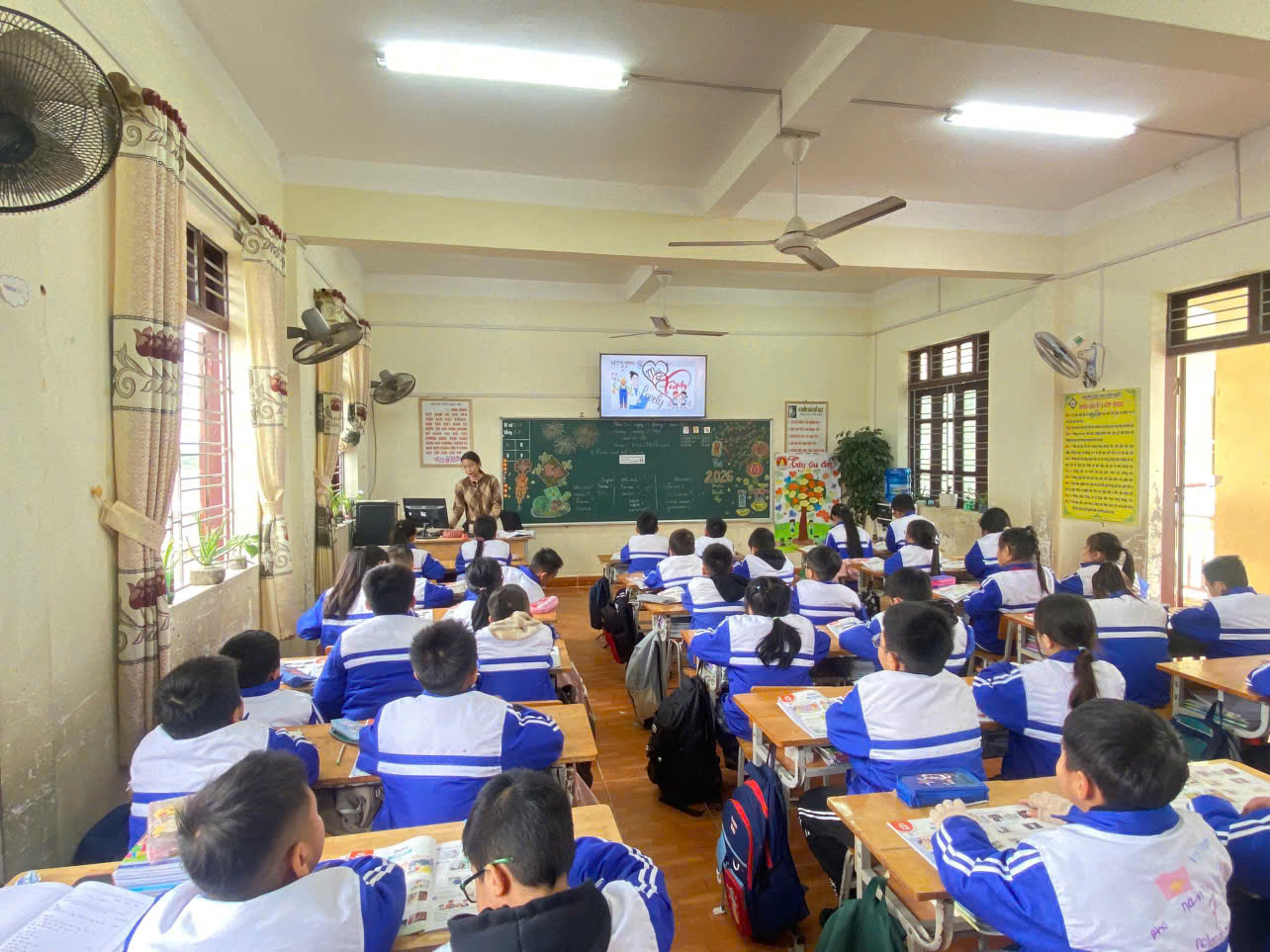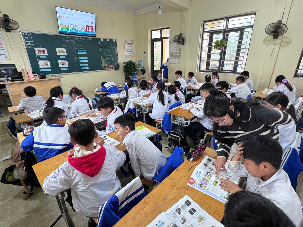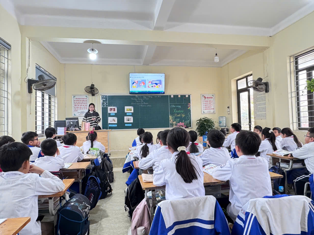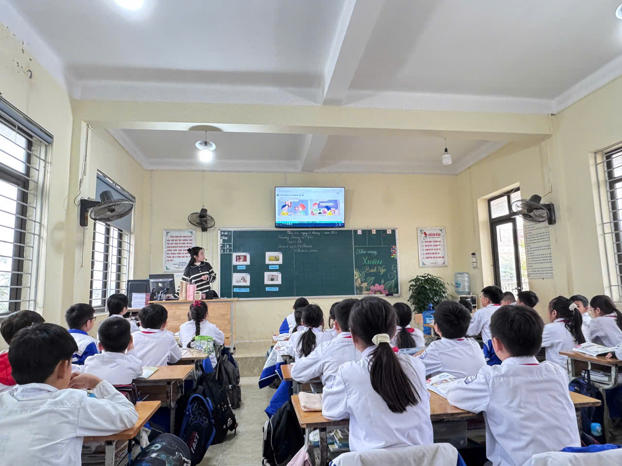 Cô Thanh là giáo viên trẻ, yêu nghề, yêu học sinh, luôn tâm huyết trong từng tiết dạy. Trong tiết học Tiếng Anh, cô đã vận dụng linh hoạt phương pháp dạy học, ứng dụng hiệu quả công nghệ thông tin và công nghệ AI, giúp học sinh hứng thú, chủ động tham gia các hoạt động học tập.