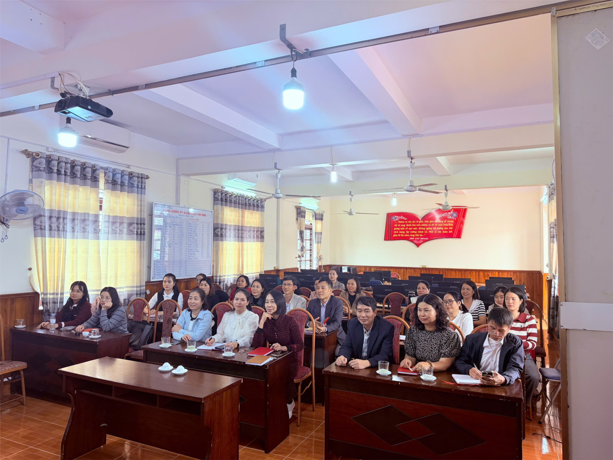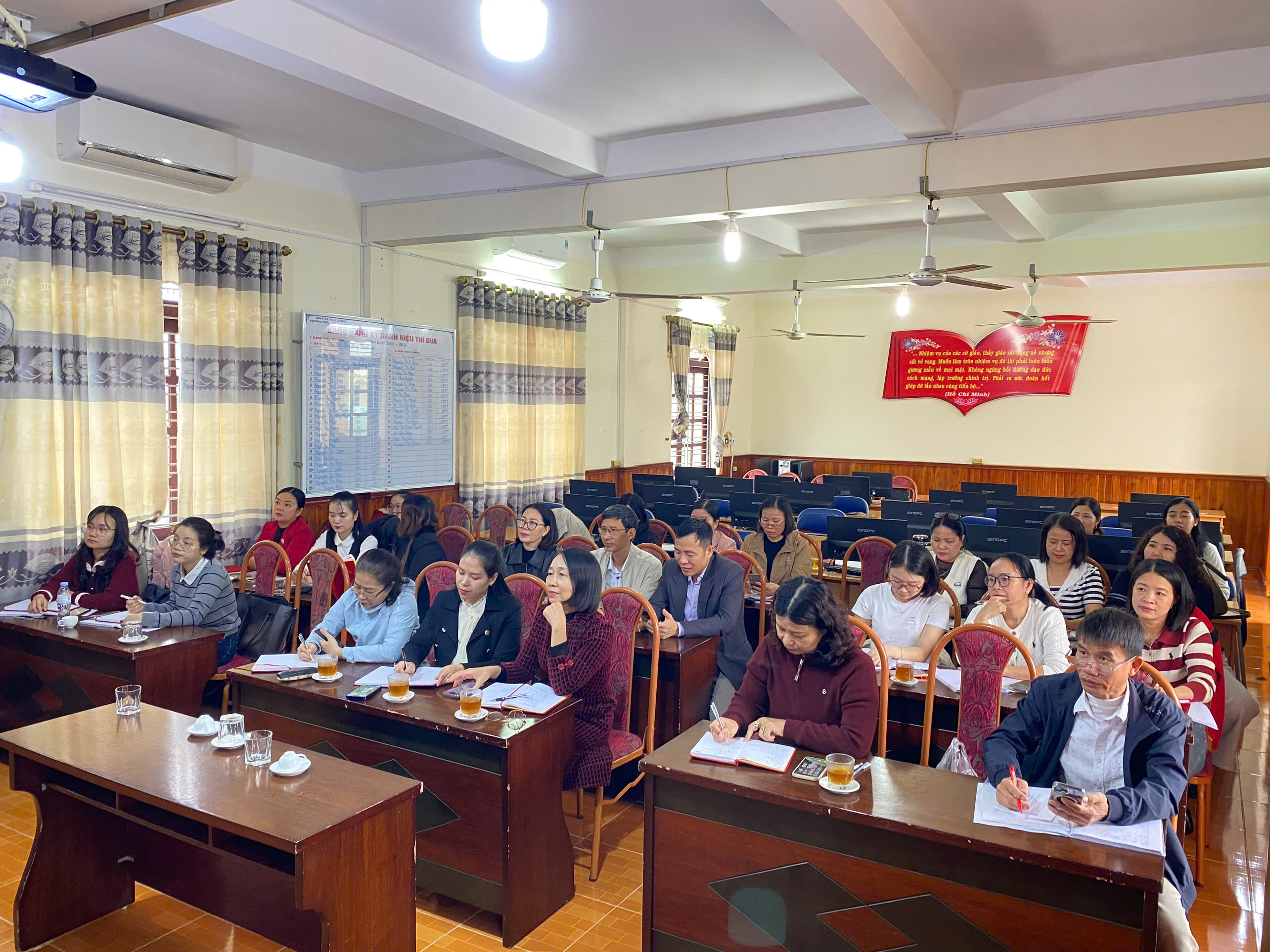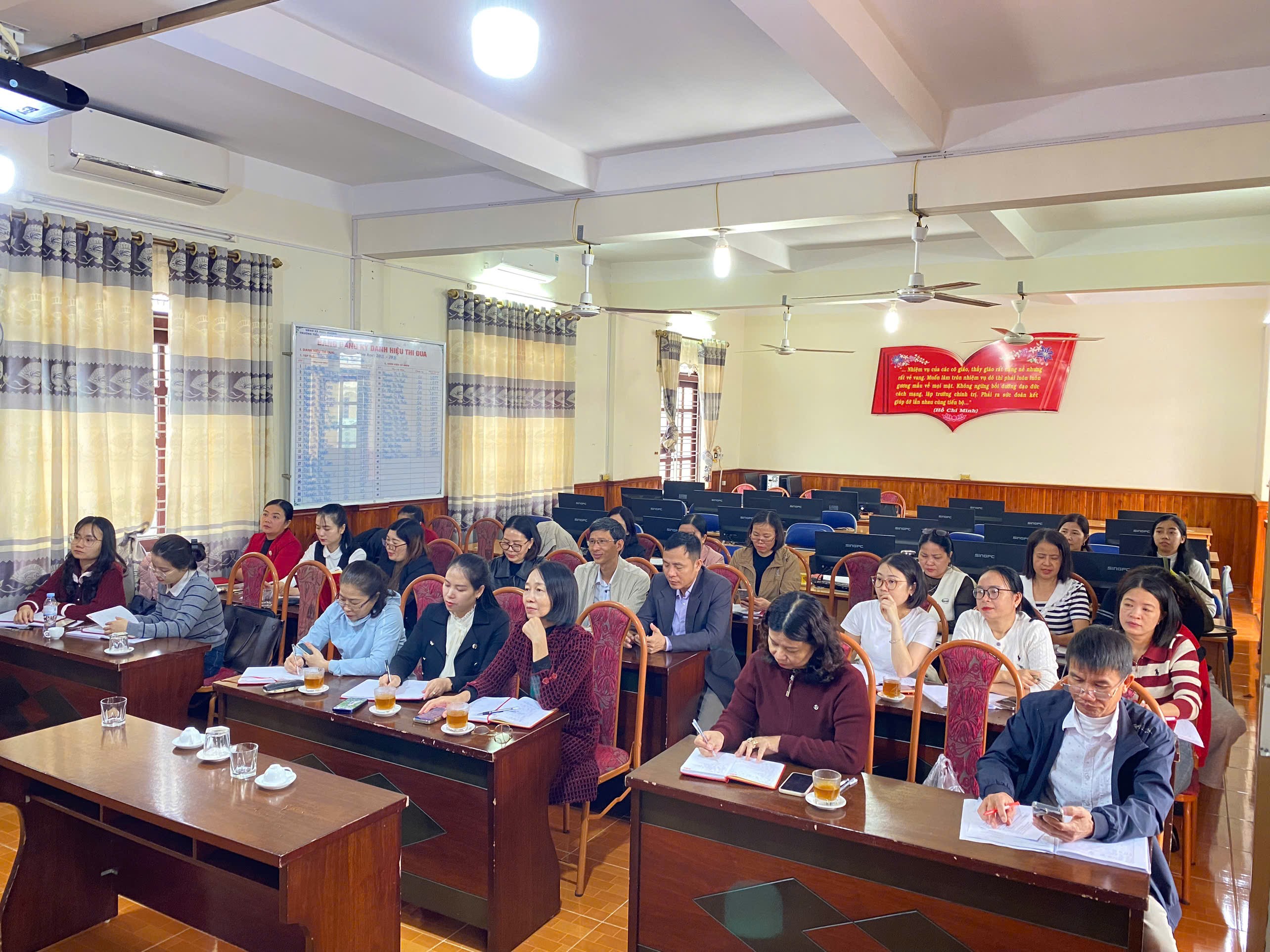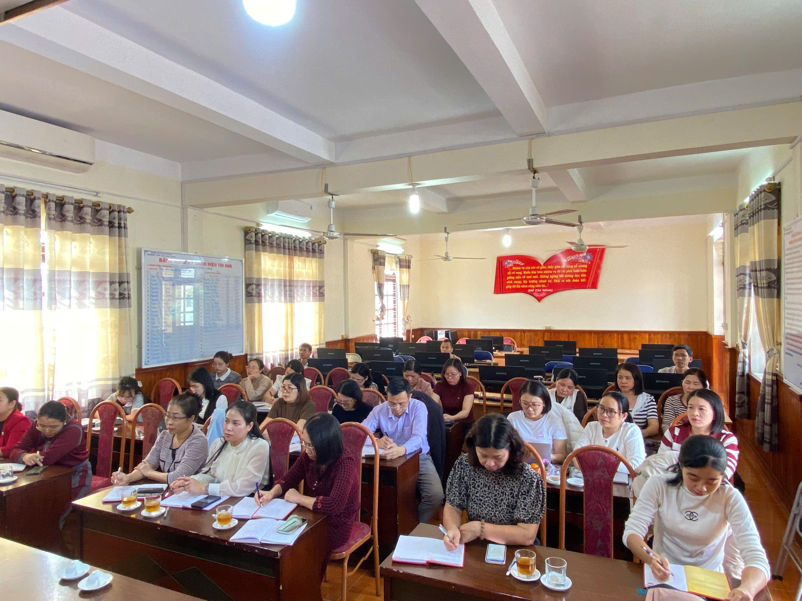 Với tinh thần trách nhiệm cao, toàn thể Đảng viên, cán bộ quản lý và giáo viên nhà trường đã tập trung theo dõi các chuyên đề quan trọng được truyền đạt tại Hội nghị. Việc nghiên cứu Nghị quyết không chỉ là nhiệm vụ chính trị trọng tâm mà còn là cơ sở để mỗi cán bộ, giáo viên vận dụng sáng tạo vào công tác giảng dạy và quản lý giáo dục.
