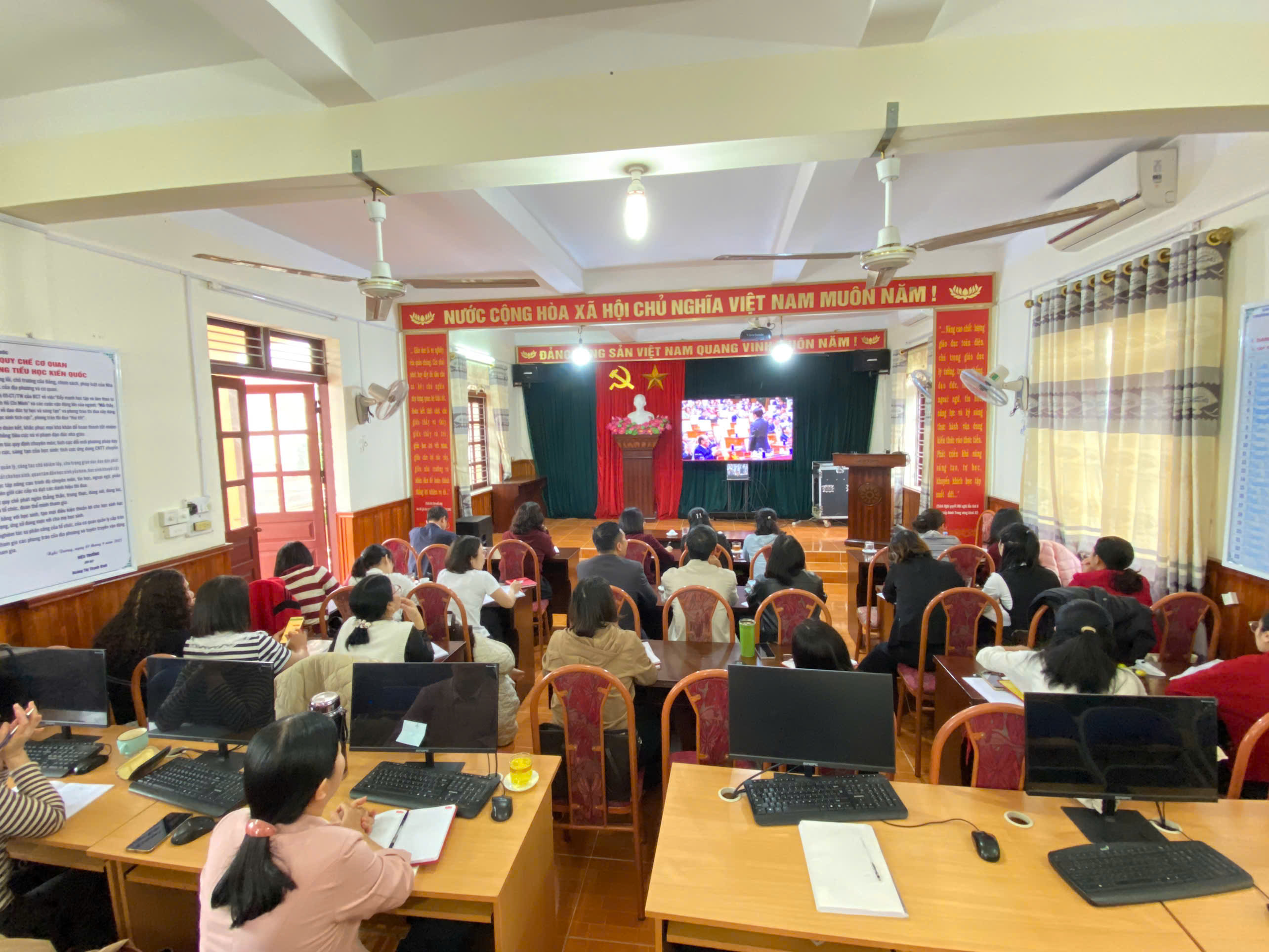 Thực hiện kế hoạch của Đảng ủy cấp trên, hôm nay Thứ Bảy ngày 07/02/2026, các Đảng viên thuộc Chi bộ Trường Tiểu học Kiến Quốc đã nghiêm túc tham gia Hội nghị trực tuyến toàn quốc về nghiên cứu, học tập và triển khai Nghị quyết Đại hội đại biểu toàn quốc lần thứ XIV của Đảng.
