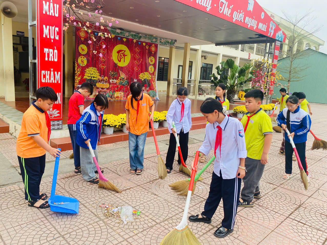🌟 Những hình ảnh đẹp trên từng góc phố, sân trường: Đây không chỉ là hoạt động lao động tập thể mà còn là bài học thực tế quý giá về tình yêu quê hương, ý thức bảo vệ môi trường và trách nhiệm với cộng đồng dành cho các em học sinh. Những giọt mồ hôi rơi xuống nhưng nụ cười luôn rạng rỡ, bởi mỗi việc làm nhỏ bé hôm nay đều là đóa hoa tươi thắm nhất gửi tới chào mừng ngày hội lớn của Đảng và đất nước.