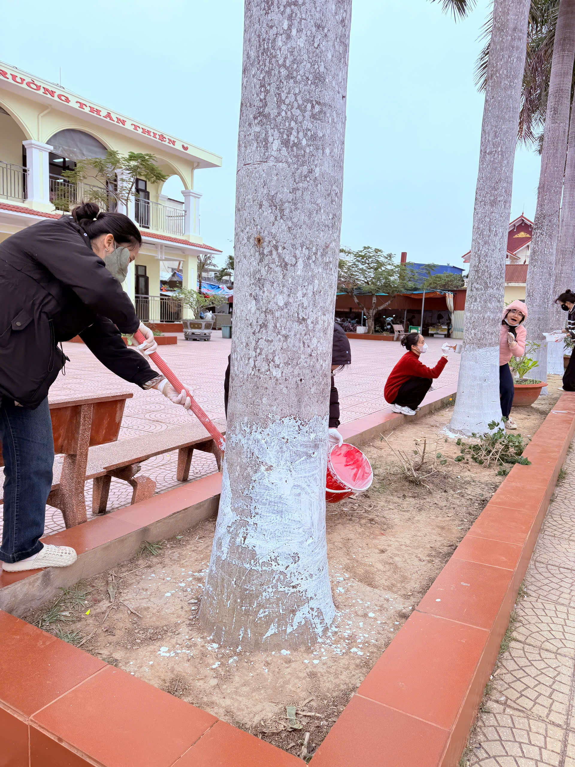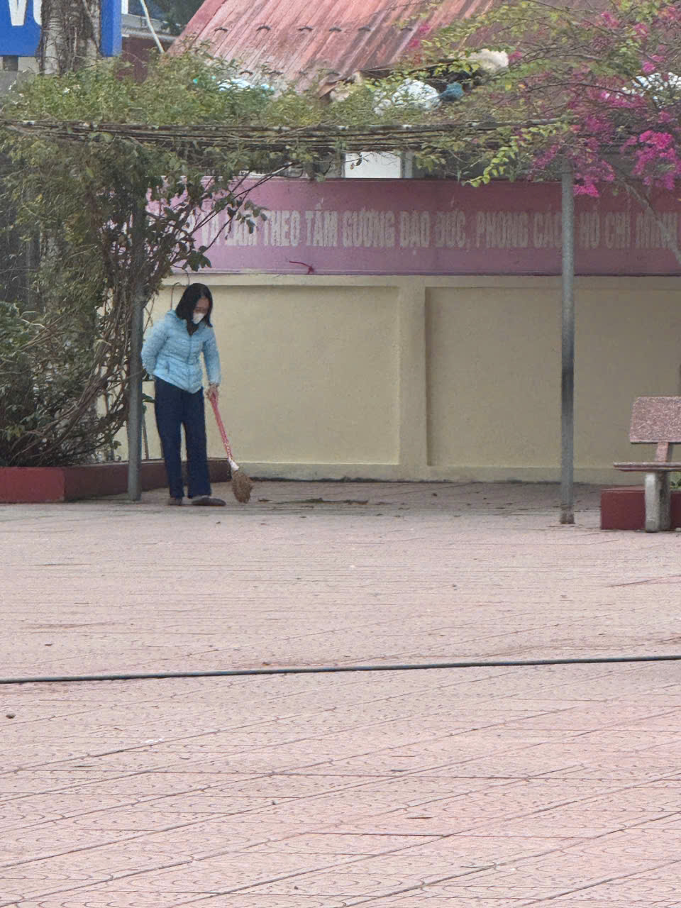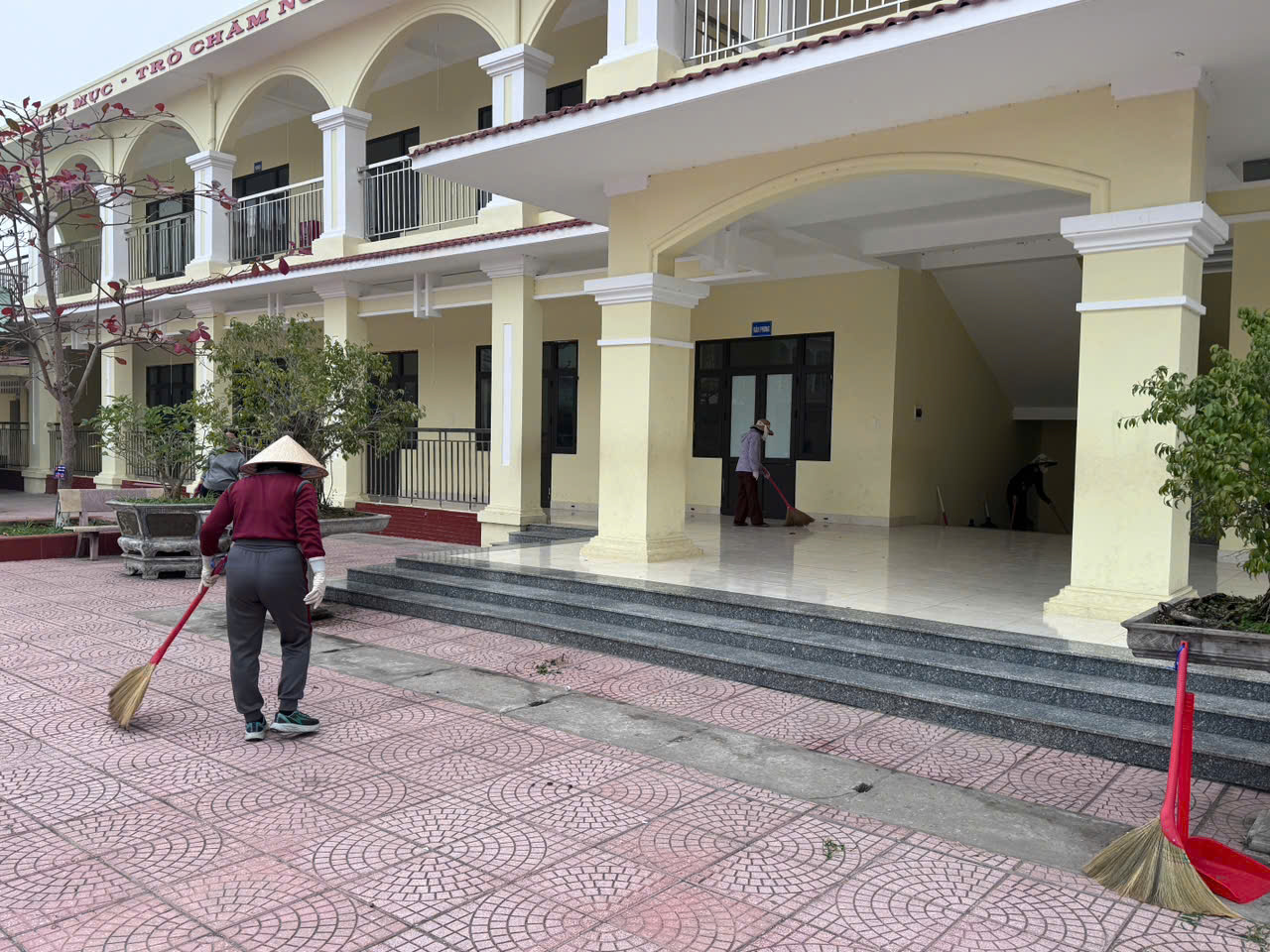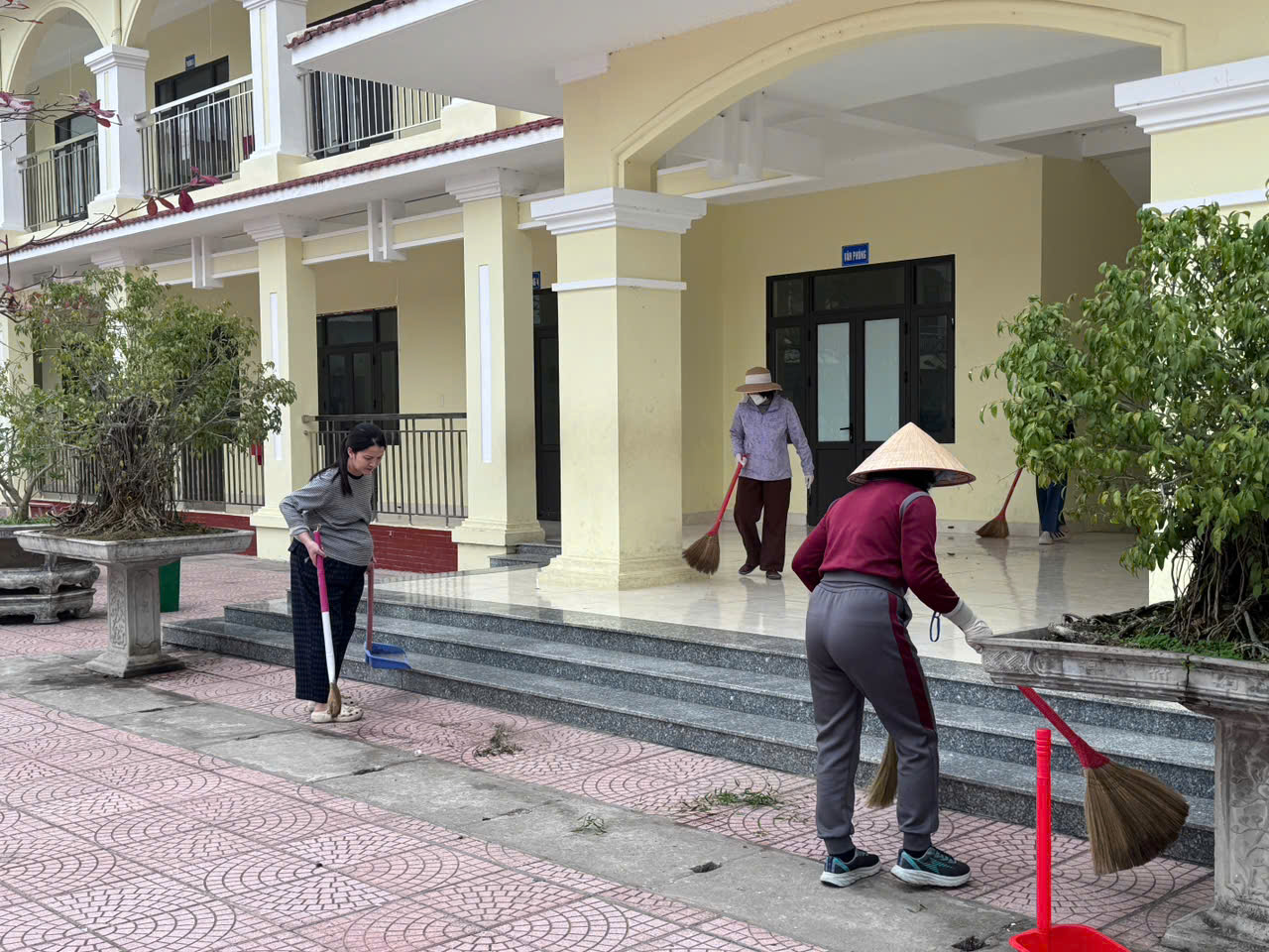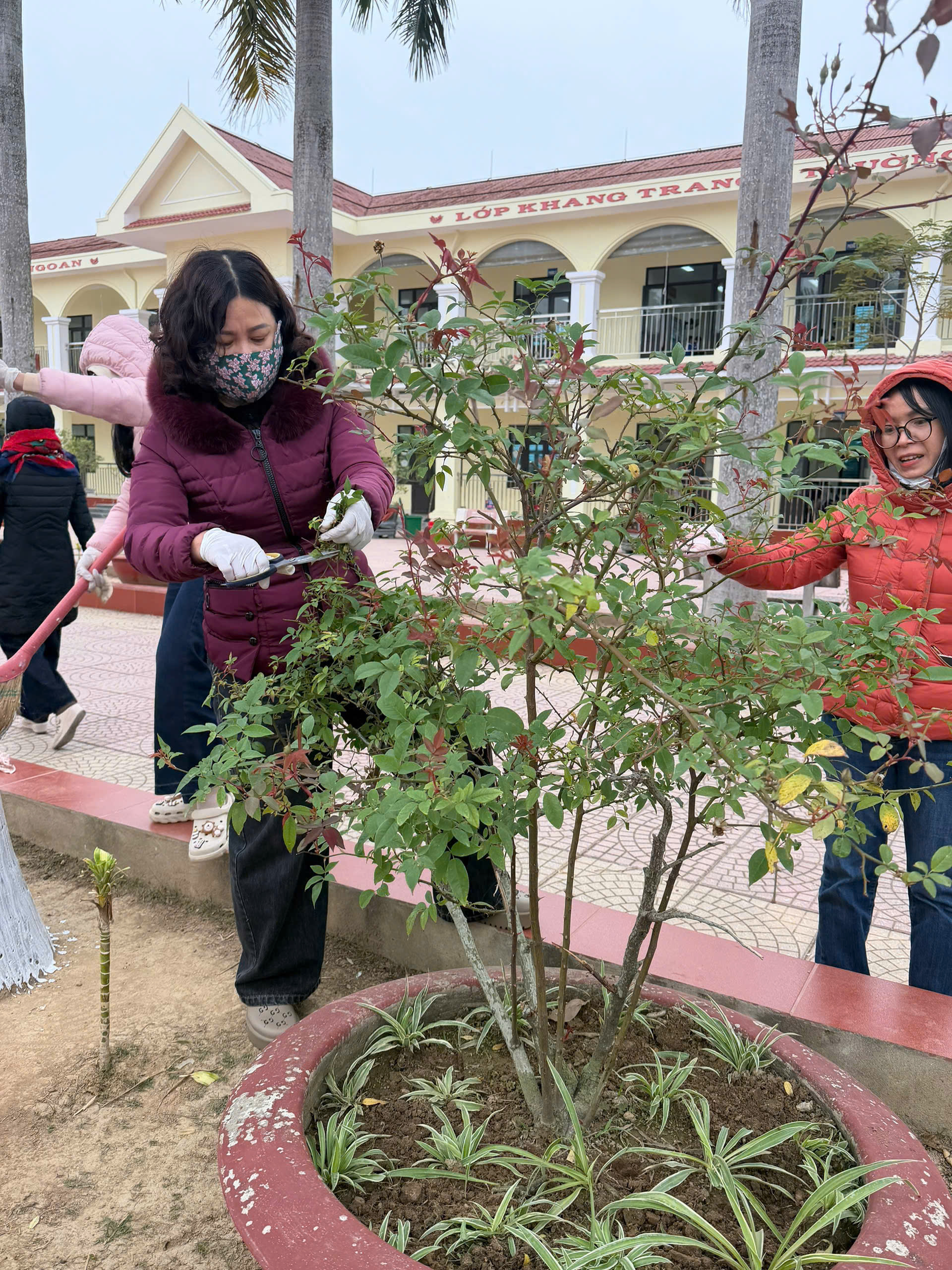 - Tổng vệ sinh khuôn viên: Làm sạch hệ thống sân chơi, bồn hoa và các khu vực chức năng trong toàn trường.