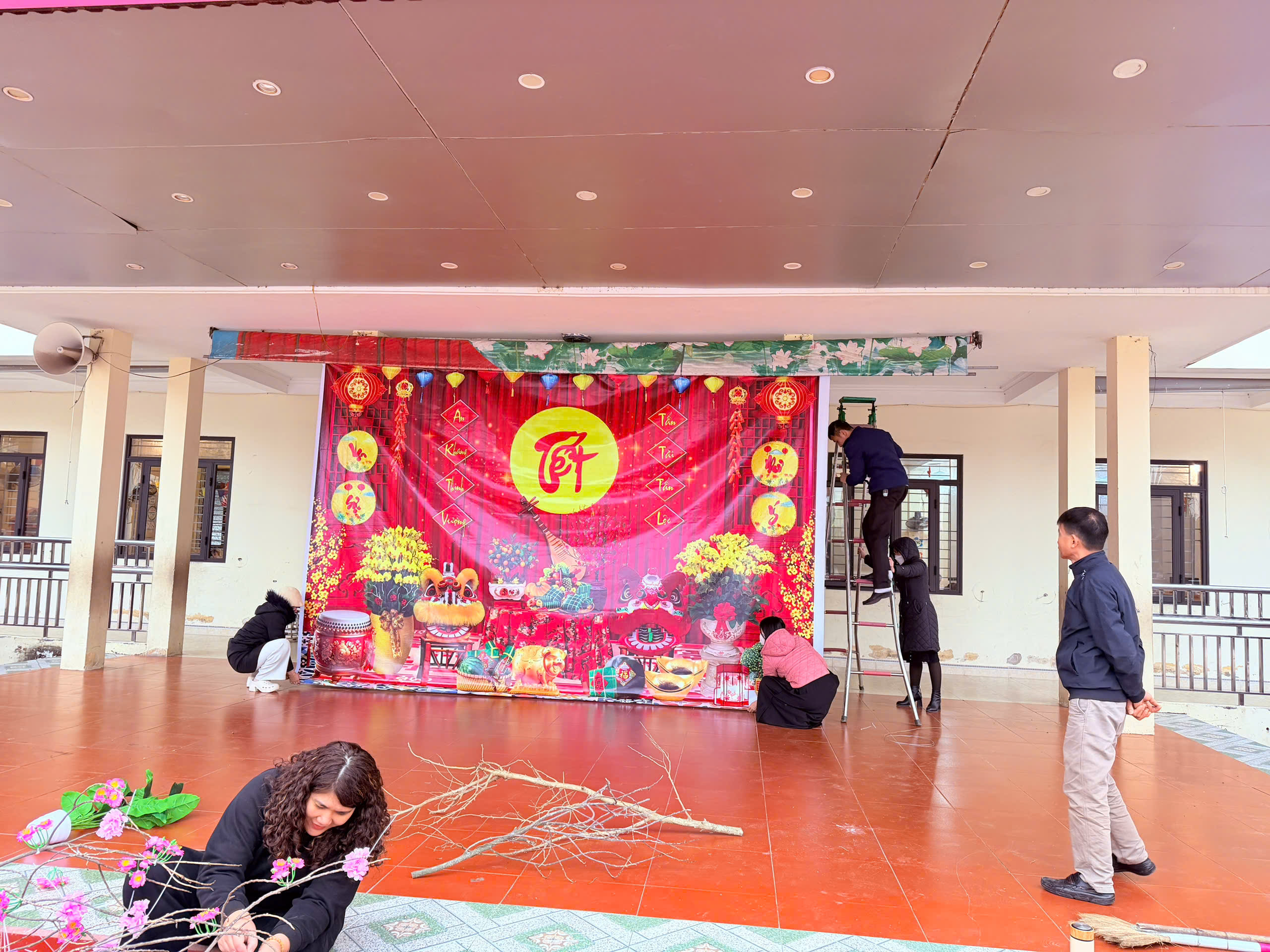- Trang trí lớp học: Các phòng học được thầy cô sắp xếp gọn gàng, trang trí thêm những cành đào, nhành mai và các tiểu cảnh Tết gần gũi, ấm áp, sẵn sàng đón học sinh quay lại sau kỳ nghỉ.